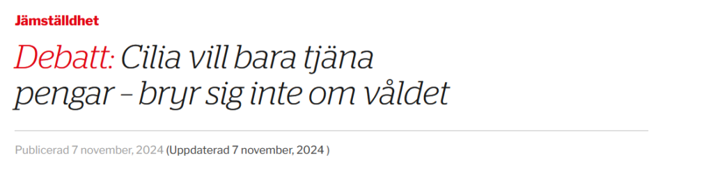 Cilia vill bara tjäna pengar – bryr sig inte om våldet – Dagens ETC 2024-11-07